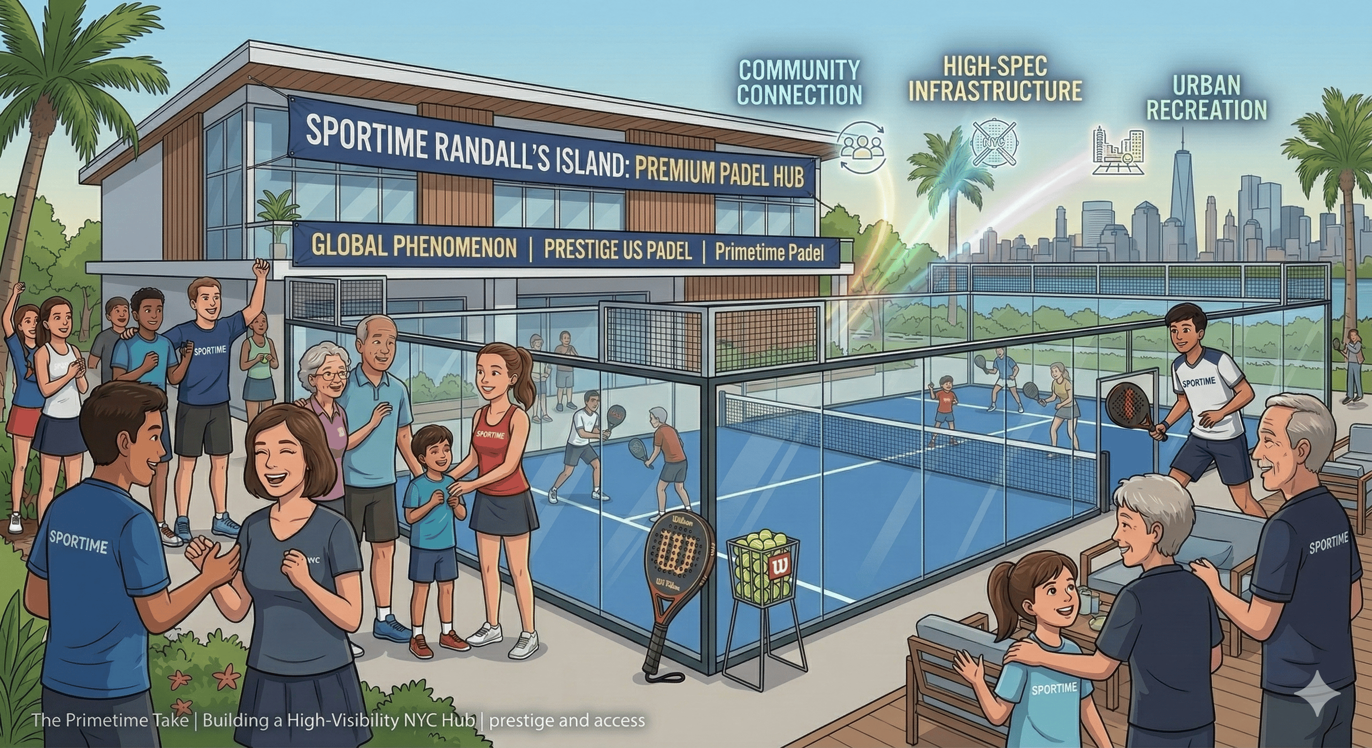 The Primetime Take This is a "prestige" move for the US scene—when an institution as established as SPORTIME goes all-in on padel, it signals to every other major sports club in the country that the time for "wait and see" is over. For the NYC market specifically, adding premium courts at Randall’s Island helps bridge the gap between niche luxury clubs and high-traffic public access, creating the high-visibility "hub" needed to sustain a massive metropolitan player base.